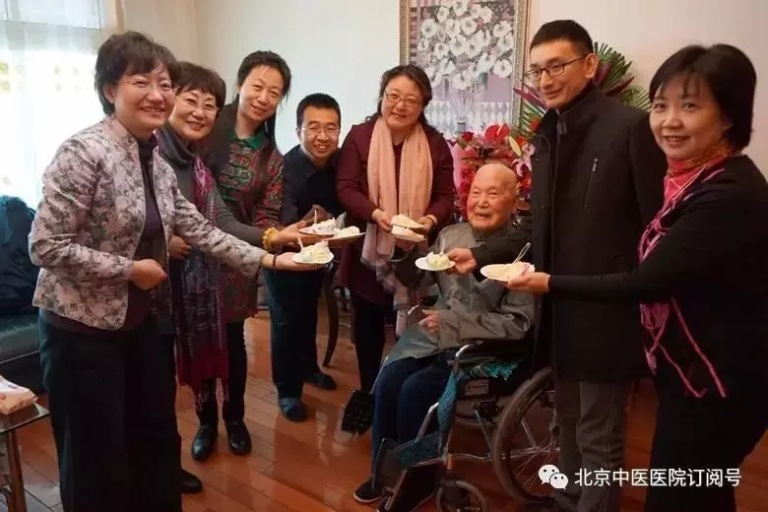 2017年3月16日上午,北京市卫计委离退休干部处曲新丽处长、市医管局党群处张海鸥处长一行4人,在北京中医医院工会张金霞主席、离退办温荣民主任、皮肤科周冬梅副主任、张苍副主任等人的陪同下,为我院皮科专家何汝翰老人送上百岁生日祝福!