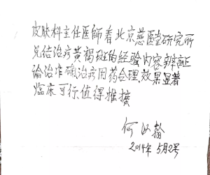 何先生擅长中医皮外科诊疗工作,临证注重调理脾胃,主张强内以护外,在治疗皮科疑难重症上取得显著的疗效,受到了患者的欢迎和赞誉。